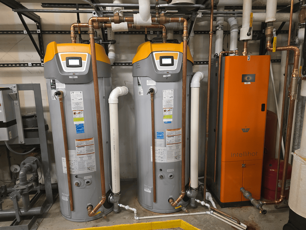 Metropolitan Mechanical Contractors helped the healthcare facility install an Intellihot iN199 Neuron unit in parallel with two other tank-style water heaters in a phased replacement.
